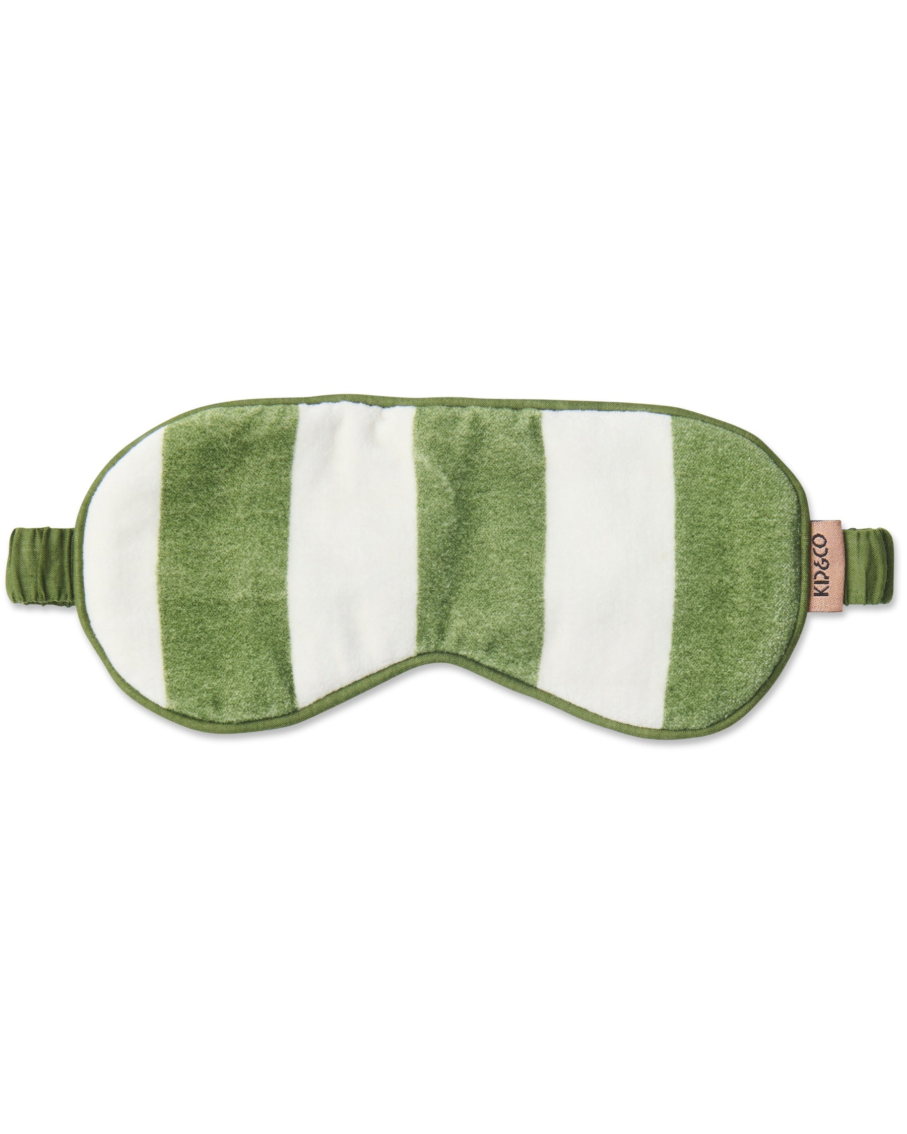 Slip into total bliss. Kip&Co's Moss Stripe Velvet Eye Mask is soft, sumptuous, and perfect for shutting out the world. Whether it’s a quick power nap or a long weekend lie-in, this little mask turns every snooze into a luxe escape. Made from 100% cotton velvet in a moss green and creamy white striped velvet with matching green cotton backing and covered elastic headband.