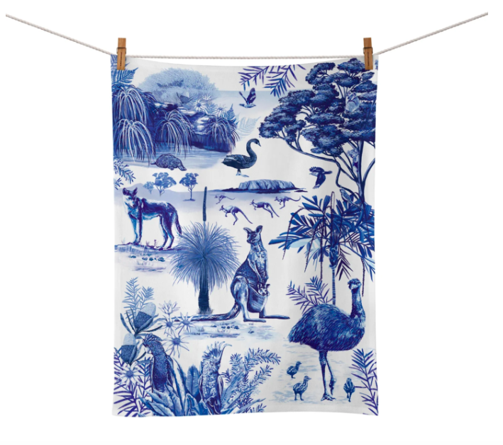 Decorate your kitchen with elegant blue ink Australiana! Featuring the stylish Dynasty Of Nature artworks by Laura Ramos, this tea towel makes for eye-catching decor or a sophisticated Australian souvenir for family and friends abroad. Packaged in a neat, flat cardboard envelope this item is perfect for popping in the post!