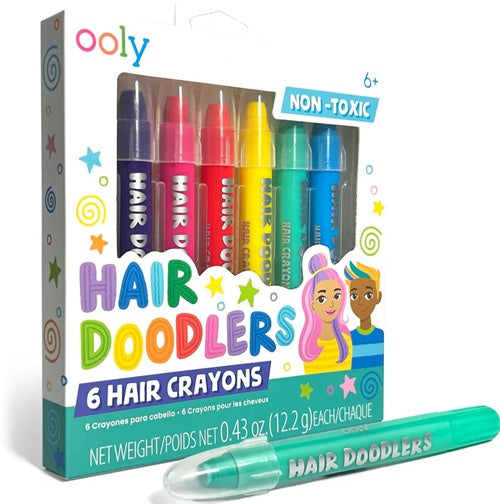 Express your unique style with OOLY's Hair Doodlers, a set of 6 vibrant, washable hair crayons designed to add a splash of colour to your hair. Perfect for creating colourful streaks, funky patterns, and imaginative designs, these crayons let you transform your hair into a canvas of creativity. Ideal for parties, festivals, or just everyday fun, Hair Doodlers are easy to use and safe for all hair types. The non-toxic formula ensures they are gentle on your hair and easily washable with shampoo. Add a burst of colour and a lot of personality to your look with OOLY’s Hair Doodlers.